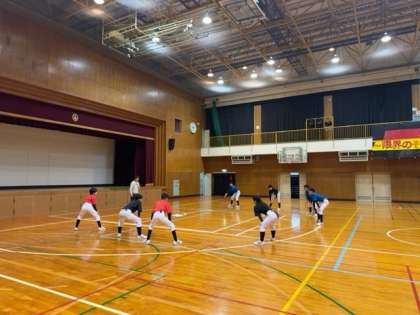 朝からあいにくの雨模様なので、体育館でできるトレーニングに取り組んでいます。