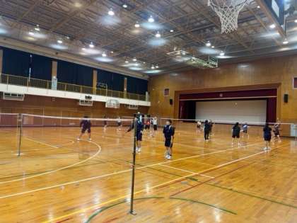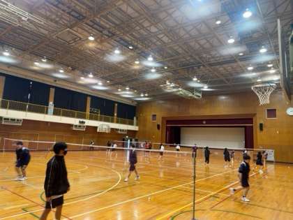 照明工事で体育館が使えない日本橋中学校のバドミントン部が、放課後に来校し、木津中のバドミントン同好会と合同練習に取り組んでいます。