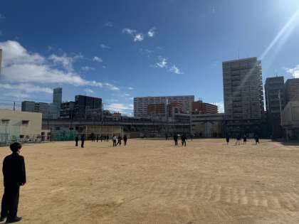晴れてはいますが、気温が低く、風が冷たい中ですが、昼休みの運動場はボール遊びで元気いっぱいです。