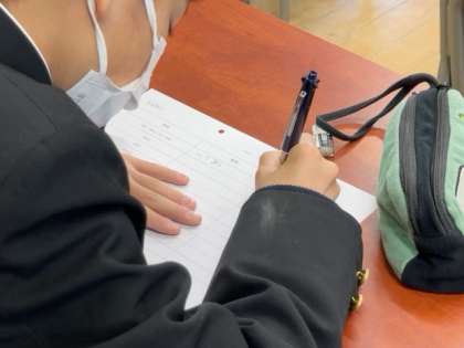 動詞の意味と過去形に変換する小テストに取り組んでいます。