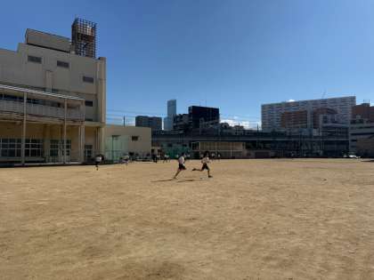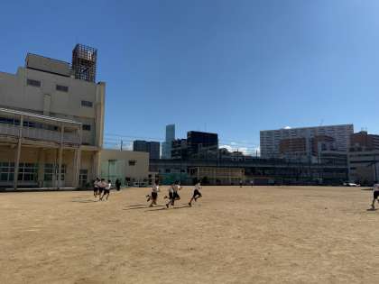 運動場で、持久走に取り組んでいます。今日は、グランド1周のインターバル走を8周走りました。