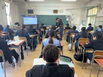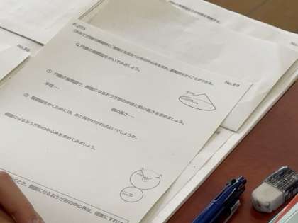 立体図形(円すい)の展開図を作図する学習に取り組んでいます。扇形の中心角を何度にするかが重要なポイントのようです。