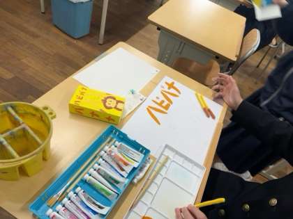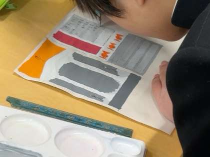 2学期から引き続いて、お菓子のパッケージデザインの製作が続いています。いい作品が出来上がりつつあります。