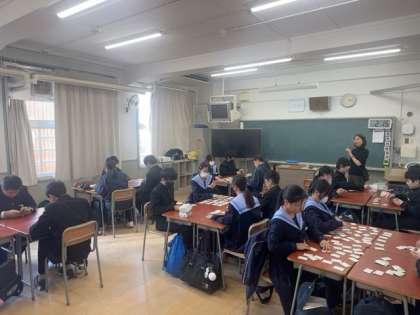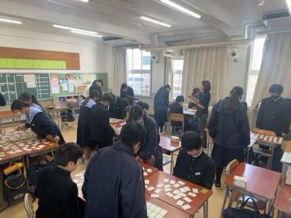 来週火曜日(28日)に行われる「百人一首大会」に向けて教室で練習に取り組んでいます。