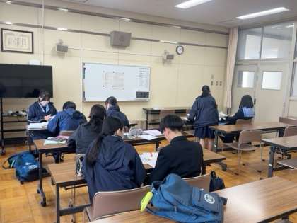 3年生はテスト後に給食を食べて下校となりましたが、放課後学習会に参加して明日以降のテストや入試に向けた勉強に励んでいました。