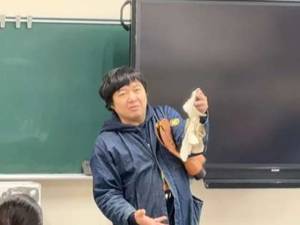 地域のNPO法人であるシューネクストさんに来校していただき、皮革産業のことを聞いたり、実際に革細工に取り組んだりします。