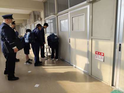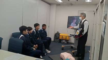 消防署で心配蘇生の実習をしたり、中学校での消防点検を一緒にさせてもらったりしています。