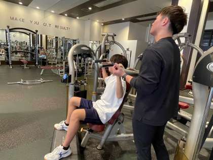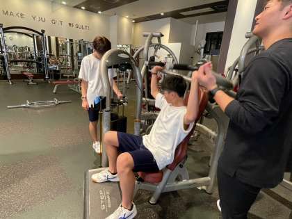 スポーツクラブNASなんばパークスでは、実際のトレーニングマシーンでトレーニングの体験もさせてもらっています。
