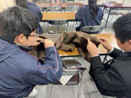 1年生では、昨日と今日の2日間で、クラスを2分割して「職業講話と体験学習」に取り組んでいます。