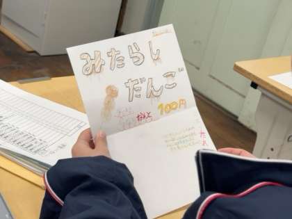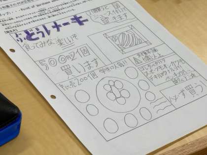紙粘土で作った和菓子を宣伝するポスター(POP)作りに取り組んでいます。