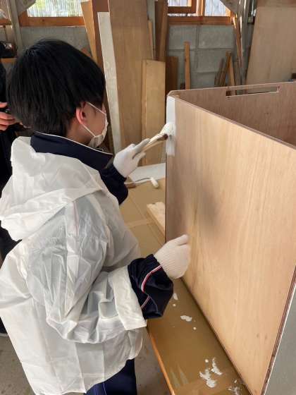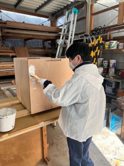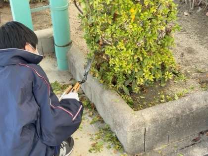 木津中学校の管理作業員室では、木々の剪定や木材塗装などの体験をさせてもらっています。