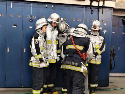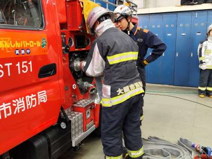 浪速消防署では、実際の放水訓練などの体験をさせてもらっています。
