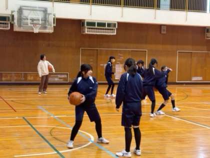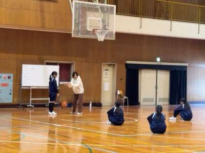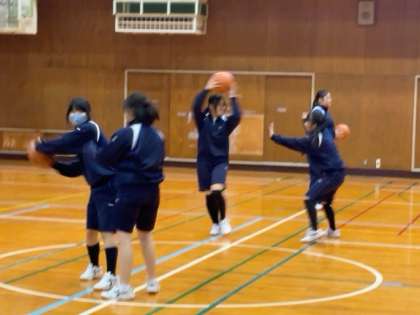 バスケットボールに取り組んでいます。ピボットを踏みながら、ボールをディフェンスから守る練習に取り組んでいます。