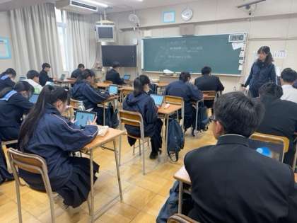 先週の木曜日、金曜日に行われた「職場体験学習」を振り返って、アンケートに答えたり、事業所へのお礼状を書いたりしています。