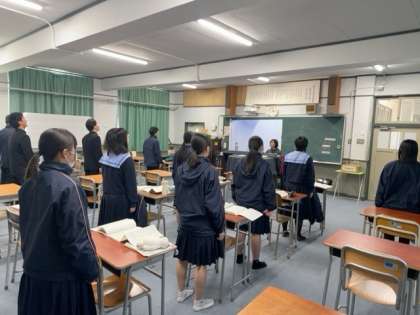 元気よく「校歌」や「大阪市歌」を歌ってから授業に入っていきます。そして卒業式での歌の練習にパートごとで取り組んでいます。