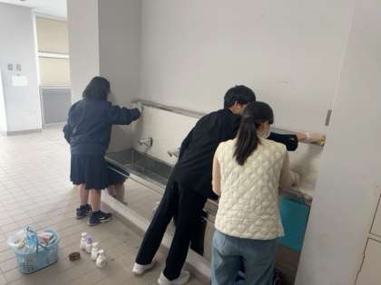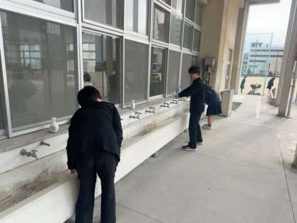 【生徒会活動】保健委員会による手洗い場清掃