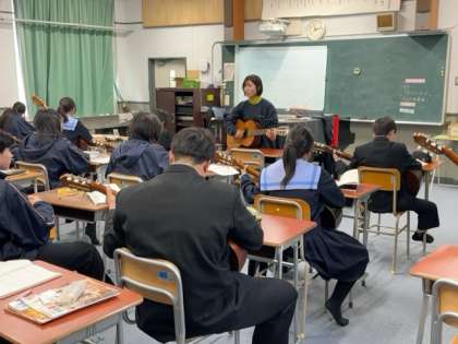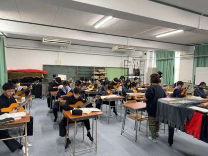 ギターに取り組んでいます。皆でコードを覚えて、カントリーロードを演奏しています。綺麗に揃っていました!