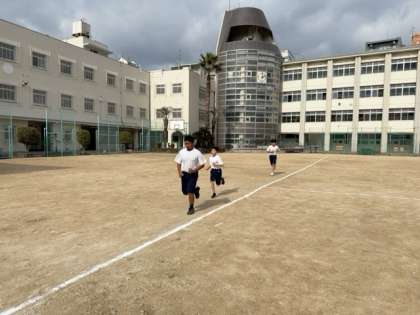 持久走に取り組んでいます。今日は運動場10周(2000m)を計測しました。