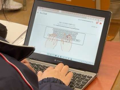 学習者端末を使ってタイピング練習「らっこたん」に取り組んでいます。