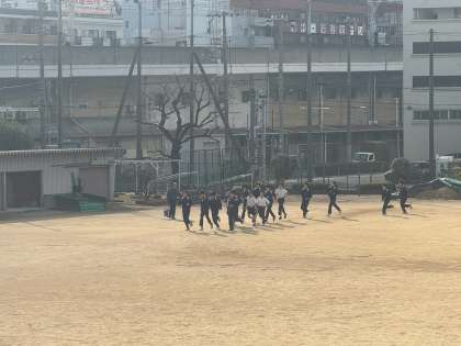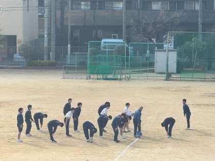 寒い中ですが、しっかり声を出して、ランニングと準備運動に取り組んでいます。