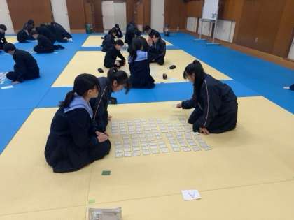 先週の1年生に引き続いて、2年生の「百人一首大会」が行われました。ハイレベルなところでは上の句を読み出した瞬間に「ハイっ!」と札を取る声が上がる時もあって、楽しくかつ熱心に取り組んでいました。