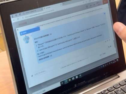 自作の英作文を生成AI(トモリンクス)に添削やアドバイスをもらったり、生成AIを教科書に登場する人物に見立てて英語で質問(会話)をしていく授業が行われました。