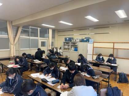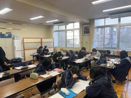 京阪神地区の私立高校入試が来週に迫っていることもあり多くの3年生が参加して受験する高校の過去問題などに取り組んでいます。