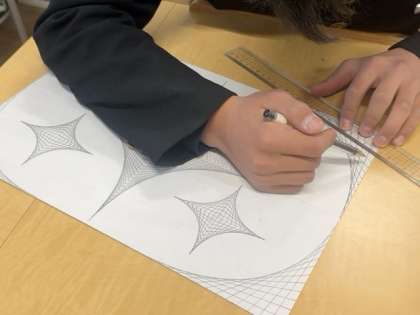 引き続き、線織面の作品製作に取り組んでいます。ボールペンでの清書と色鉛筆での着彩に取りかかっています。