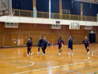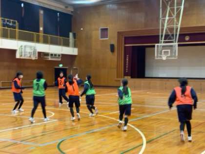 引き続き、バスケットボールの授業です。ゲーム形式の練習に取り組んでいます。短い時間ですが、走る量、スピードが共に高いので、息が上がっています。