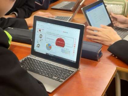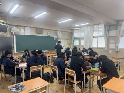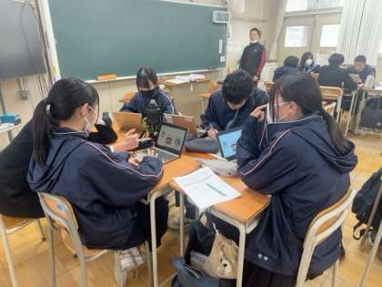 グループごとで、「未来に伝えたい和食」をテーマにプレゼンテーションを作成しています。