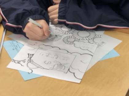 引き続き、紙粘土で作った和菓子をPRするためのポスター作成に取り組んでいます。