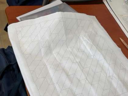 これから2年生にかけて取り組む裁縫実習に関する説明を聞いています。