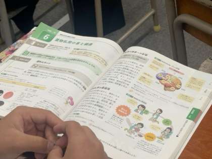 保健分野の授業です。「薬物依存」について、心身への影響や、問題点などについて学習しています。