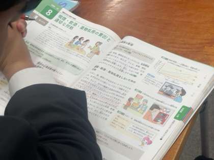 喫煙・飲酒・薬物乱用などによる害から身を守るためにはどうしたらいいのかを学んでいます。