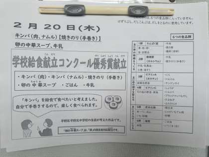 2月20日(木曜日)の給食です!