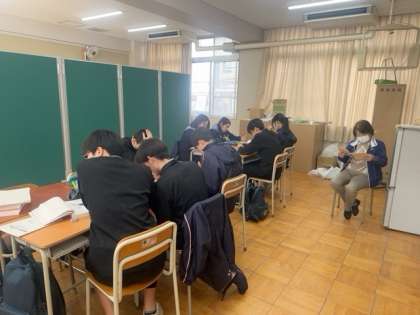 3年生は午後から進路懇談で下校していますが、公立高校一般選抜を目指す人たちが残って勉強に取り組んでいます。