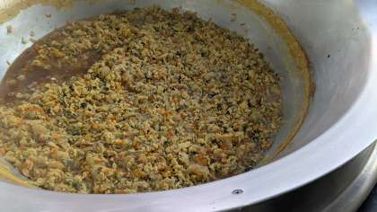 甘辛い卵とじと揚げたてのカツを教室で盛り付けて食べます。