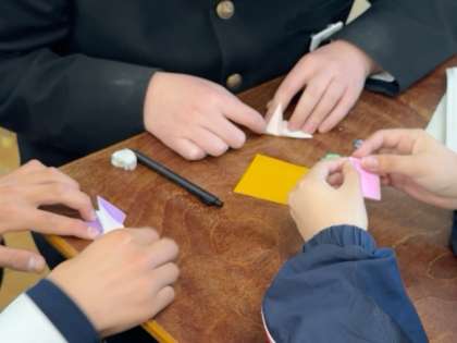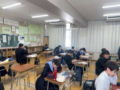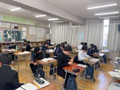 明日からの学年末テストに向けた勉強や修学旅行に向けた千羽鶴作りなどに取り組んでいます。