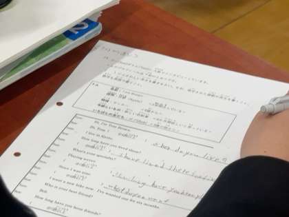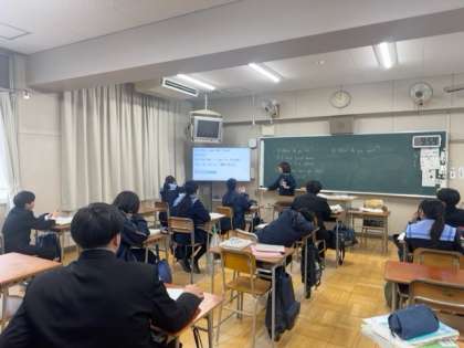 先週行われた学年末テストで浮かび上がった課題について説明を聞いています。