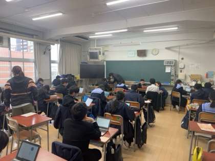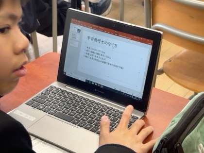 各自で分担した「職業」について調べたことをパワーポイントにまとめていっています。