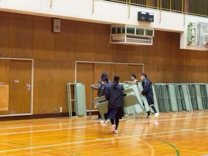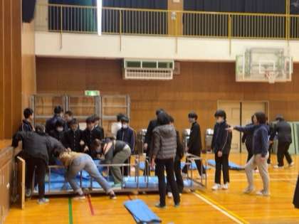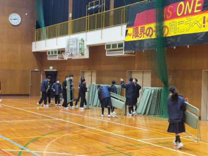 3月14日(金曜日)に予定されている「卒業式」に向けて、式場の設営準備が始まりました。1年生のみなさんが、倉庫から椅子を出したり、シート出したりしてくれました。これから少しずつ、会場設営が進められていきます。