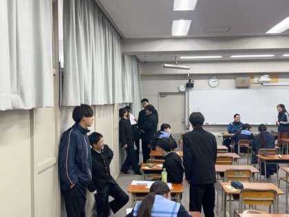 修学旅行中の夜に行う予定のレクリエーション大会について、取り組んでいます。