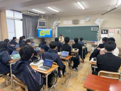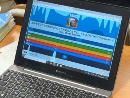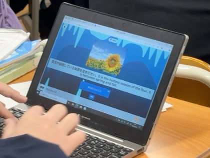 学習者端末を活用して、入試問題と連動したクイズアプリで学習を進めています。