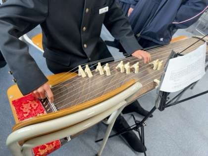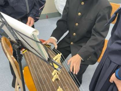 引き続き、箏の練習に取り組んでいます。このあと、各自の演奏を学習者端末で録画していくとのことです。