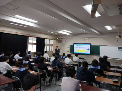 卒業間近の3年生は、4月からアルバイトなどをする人もいるかもしれません。でも、世間では「闇バイト」や「特殊詐欺」といった言葉をよく耳にします。そんな3年生に向けて、大阪弁護士会から弁護士さんに来ていただいて、みんなが「加害者」にも「被害者」にもならないために、専門的なお話をうかがいました。