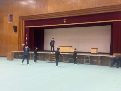 今日も有志のみなさんで、式場設営の準備を進めてくれています。いよいよ明日から3年生の練習が始まっていきます。