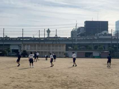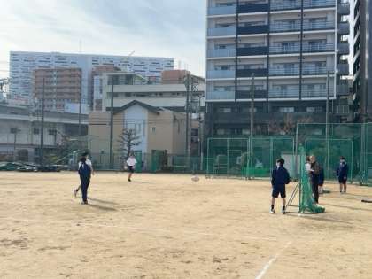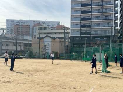 引き続き、運動場でタグラグビーの授業です。パスの実技テストも行われています。