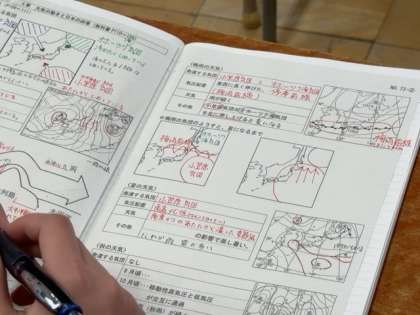 梅雨や秋雨の時季の天気や天気図について学習しています。