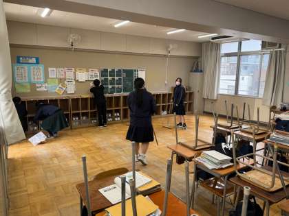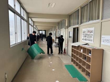 本日(3月19日)4時間目に、大清掃に取り組みました。この1年間使った教室や廊下などを中心に清掃活動に取り組みました。