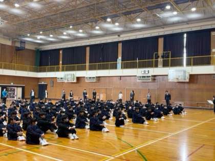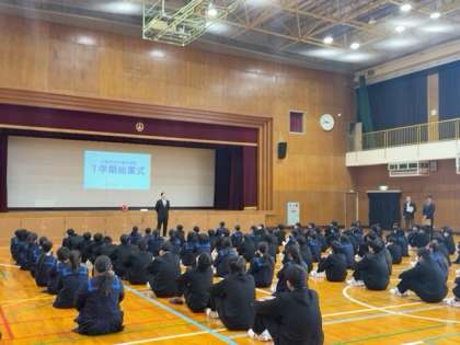 体育館にて、全校生徒が集まって「始業式」が行われました。